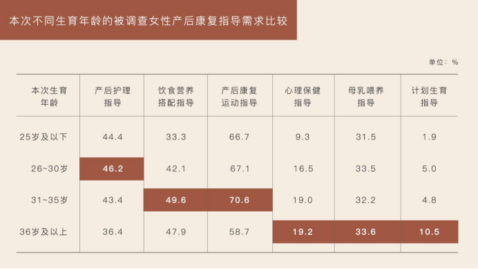 產(chǎn)后康復(fù)需求存在較大差異,不同地域、不同備孕情況、不同孩次和不同分娩方式,對于所需的產(chǎn)后康復(fù)指導(dǎo)和項目都不相同,但是超過八成的被調(diào)查女性,都主動消費過至少一種產(chǎn)后康復(fù)服務(wù)項目,產(chǎn)后康復(fù)行業(yè)的發(fā)展趨勢已經(jīng)勢不可擋。產(chǎn)康需要多業(yè)態(tài)融合突破,滿足產(chǎn)后女性不同階段的需求。