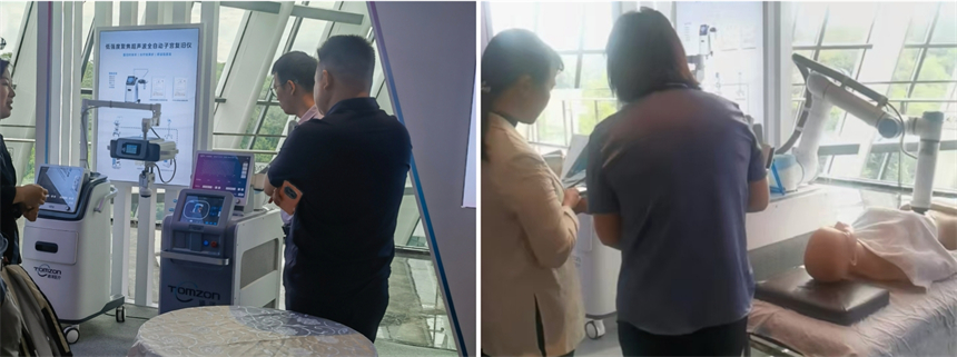 現(xiàn)場(chǎng)專(zhuān)家教授對(duì)通澤醫(yī)療低強(qiáng)度聚焦超聲波子宮復(fù)舊機(jī)器人、全自動(dòng)子宮復(fù)舊儀先進(jìn)的設(shè)備非常感興趣,并與通澤醫(yī)療進(jìn)行了深入的交流。我們認(rèn)真傾聽(tīng)專(zhuān)家教授在臨床應(yīng)用中的問(wèn)題和需求,同時(shí)深入分享了通澤醫(yī)療在婦產(chǎn)科領(lǐng)域的探索與發(fā)現(xiàn)。